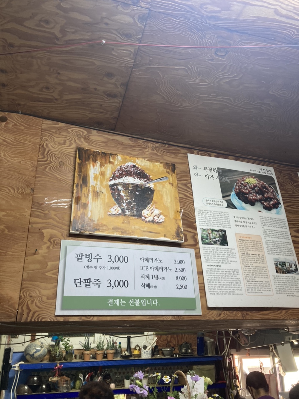 팥빙수 (3,000원) 이나 팥죽(3,000원)이었다.