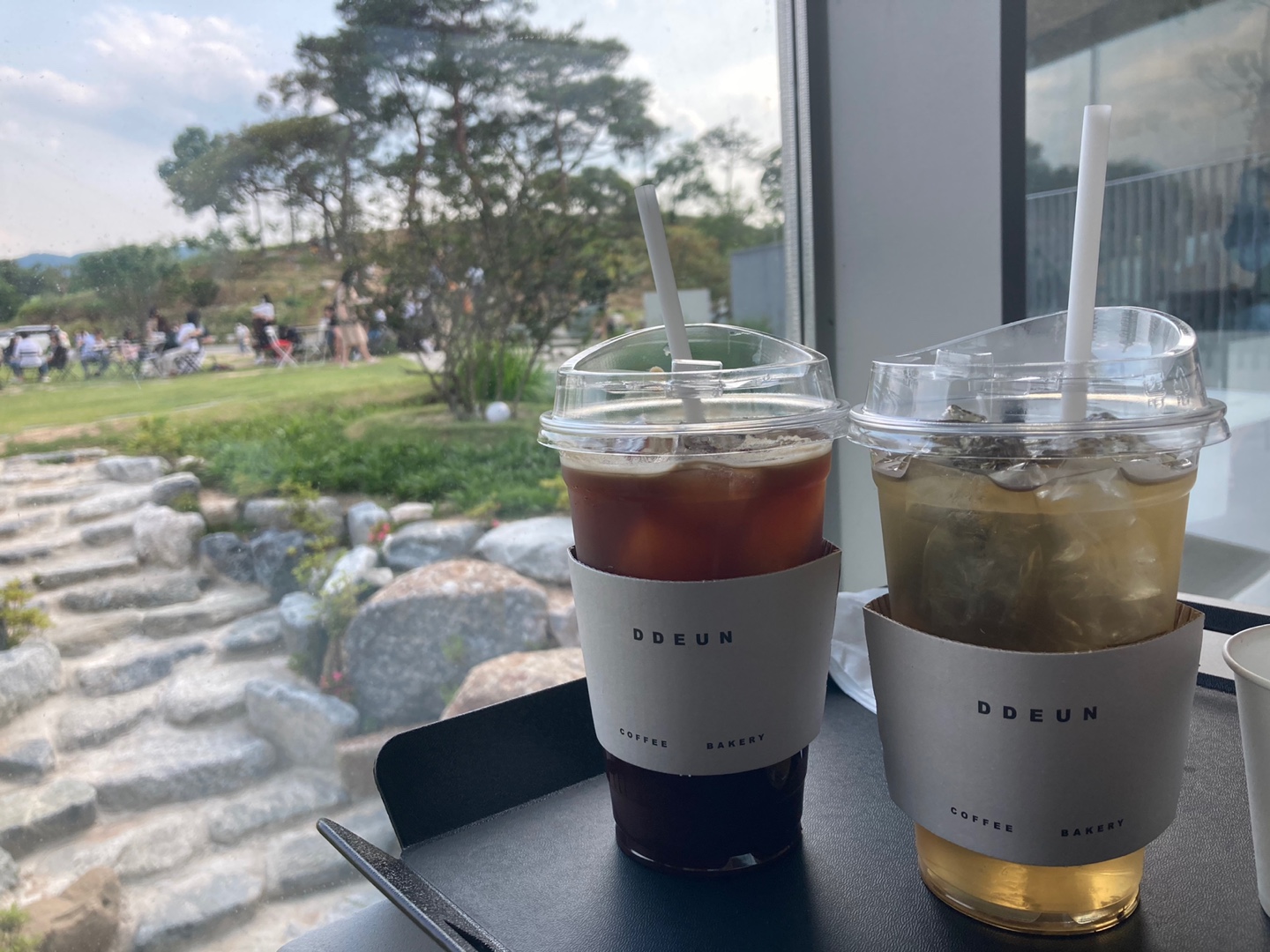 날씨가 너무 좋아서 야외에 앉아서