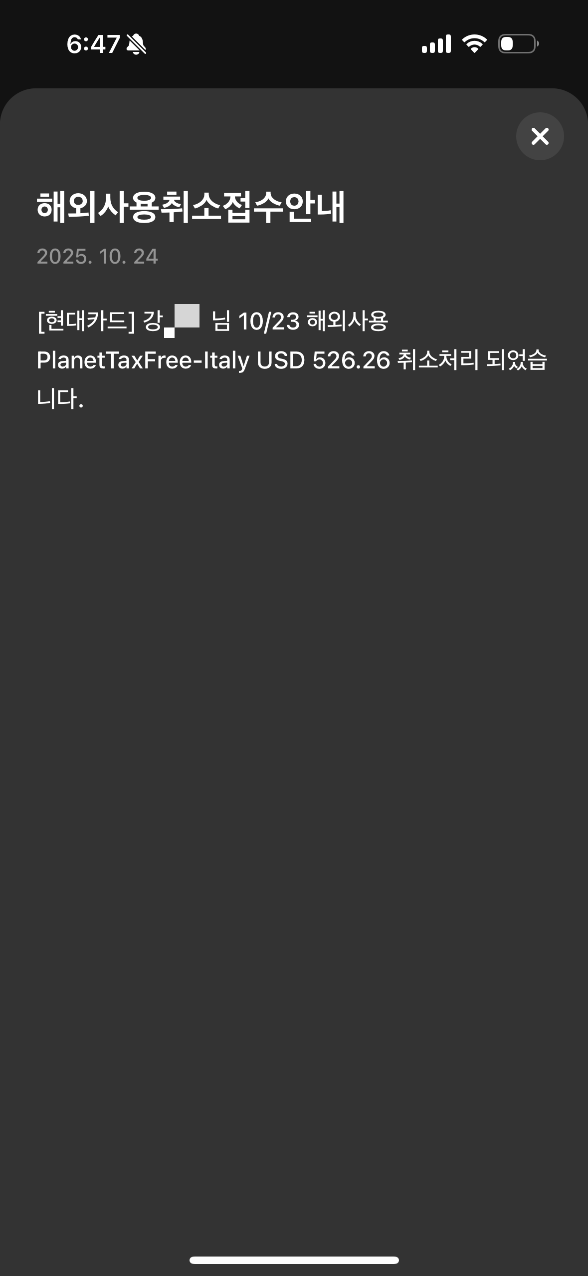 잊어버릴 때쯤 카드사에서 결제 취소 알림이 오더라고요‼️