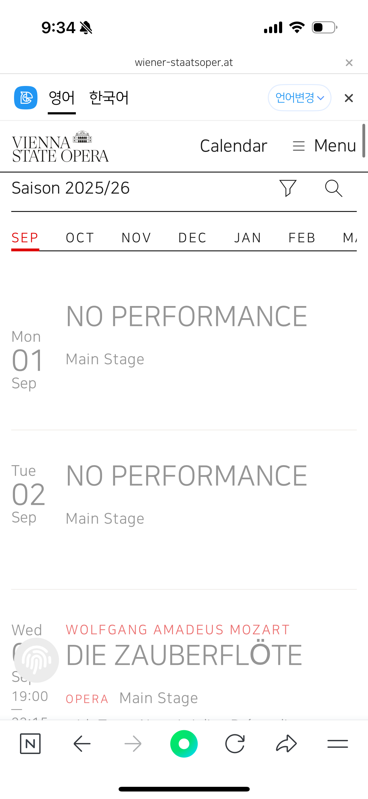 📍메인 페이지에서 Programme 확인 또는 Calendar 메뉴 통해 공연이 있는 날짜 확인! (언어는 영어로 변경하세요)