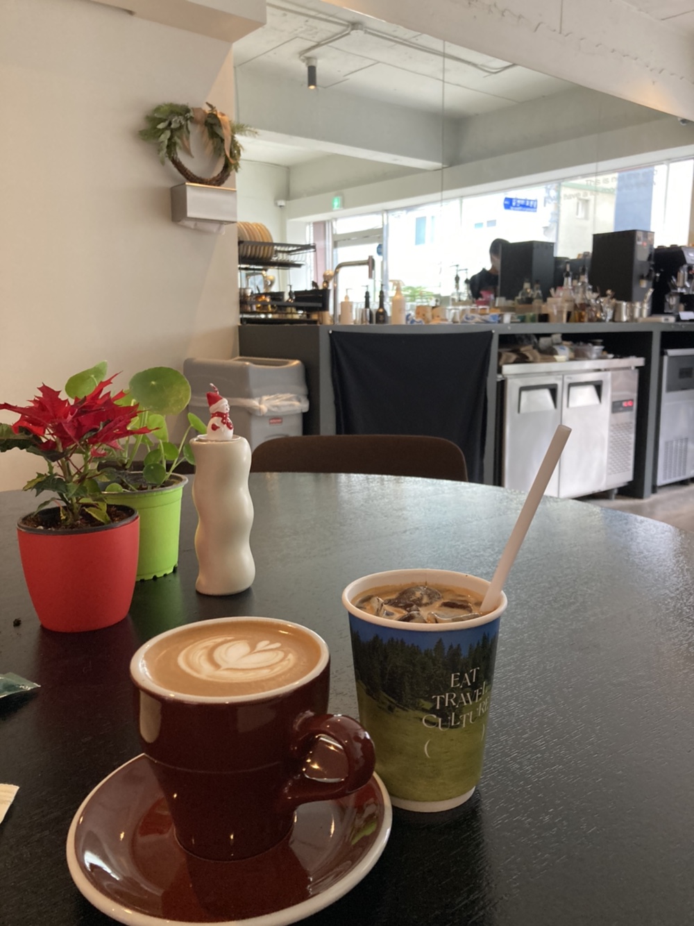 아이스 라떼 대신 따듯한 라떼를 시켰지만