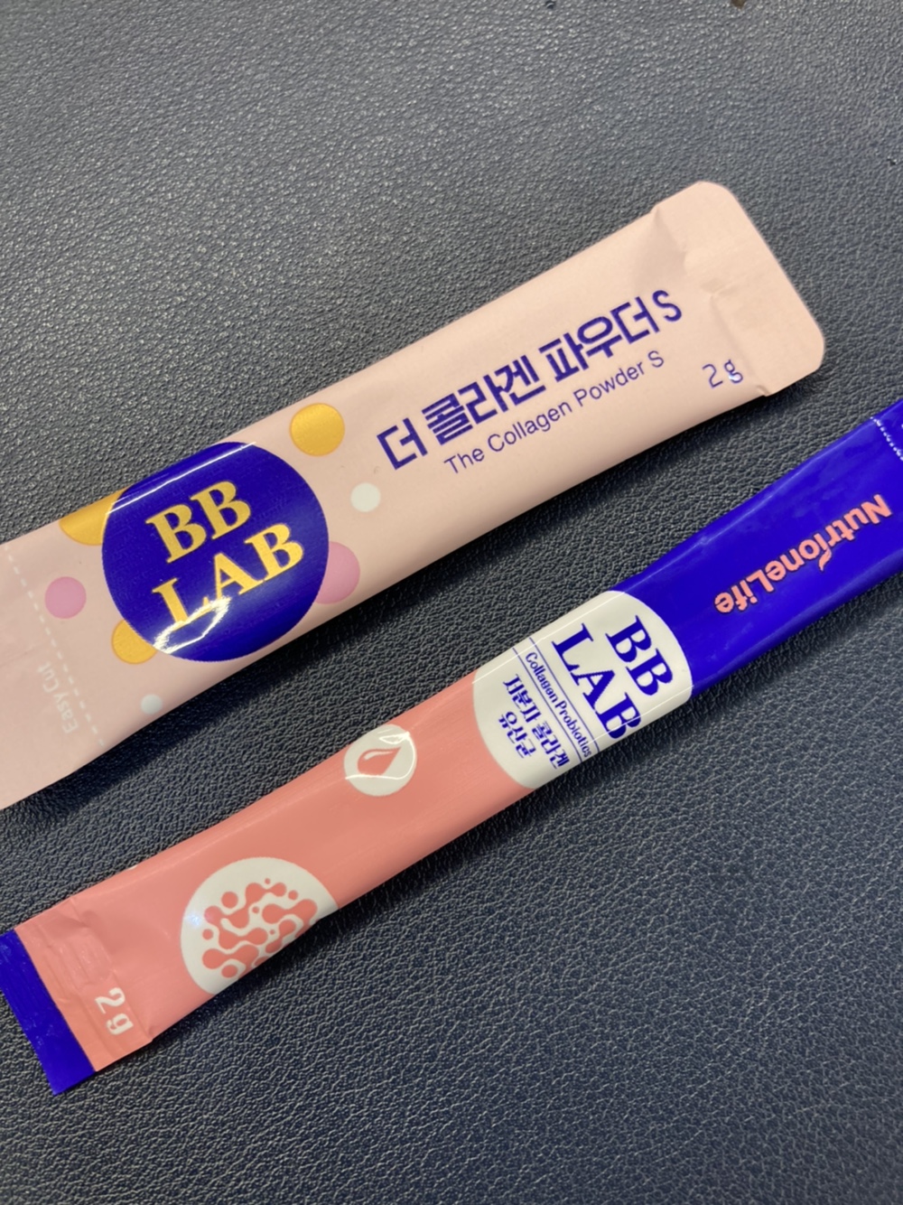 열어보면 파란색 개별포장된 콜라겐이 보인다.