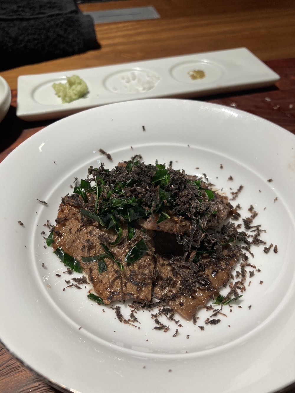 부채살 위에 진짜 트러플을 갈아주는