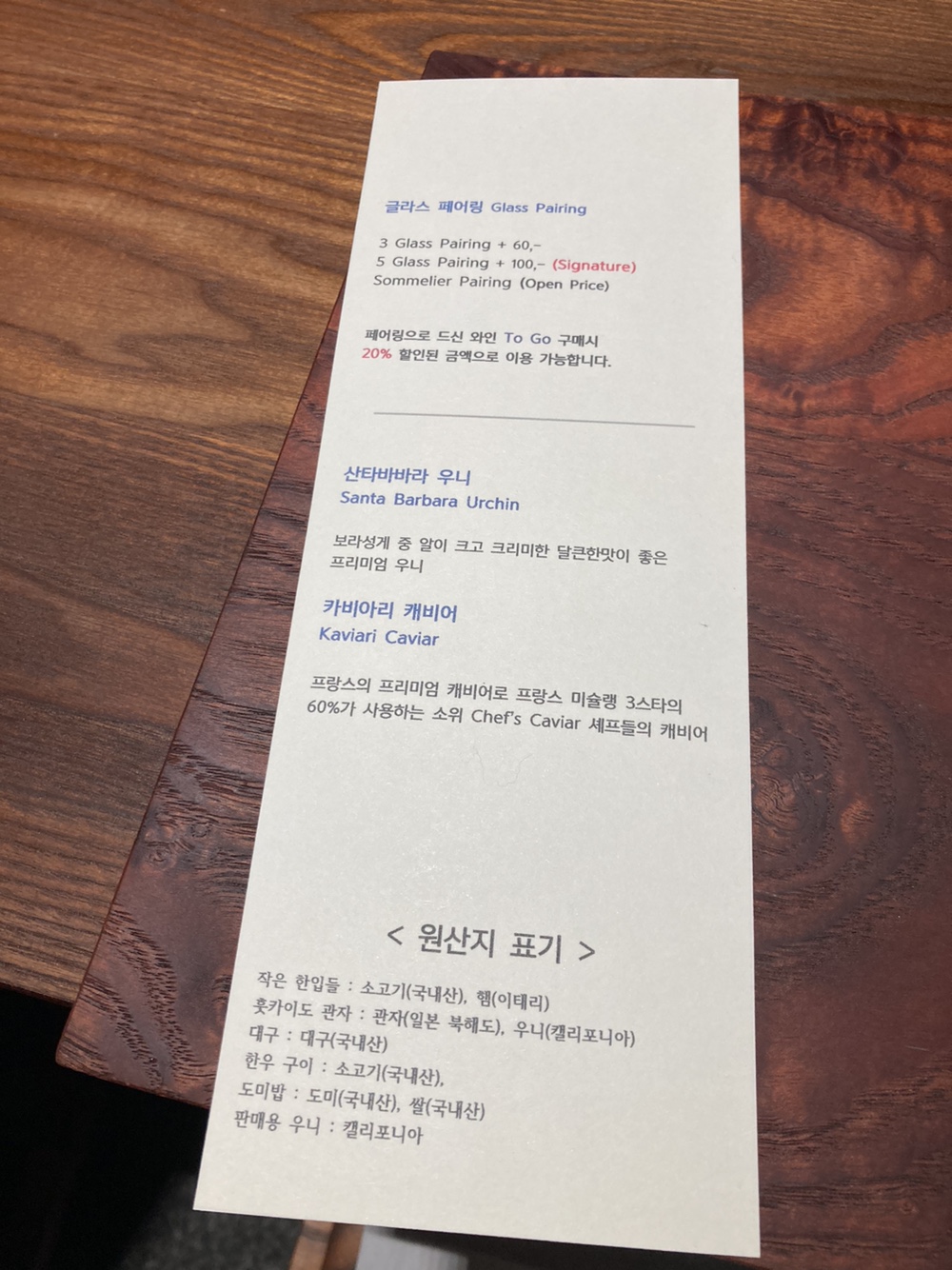 와인 글라스 페어링 옵션이 나오는데