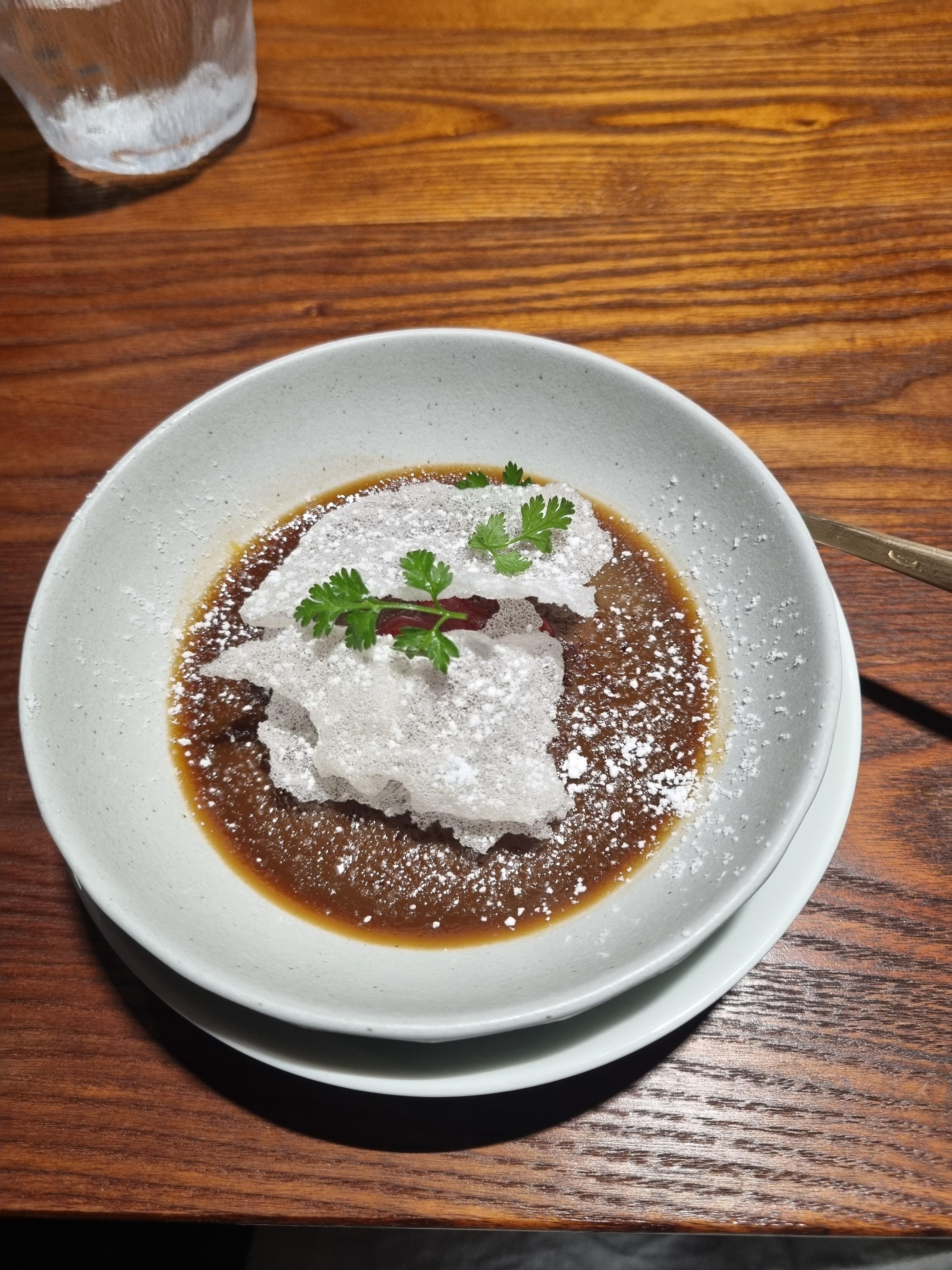 (아브루가, 스퀴드 잉크, 화이트 어니언 소스)