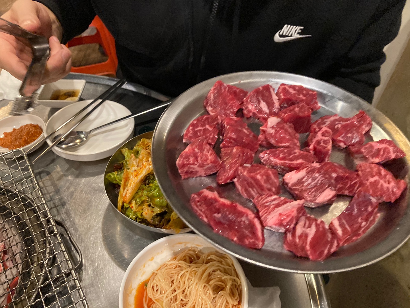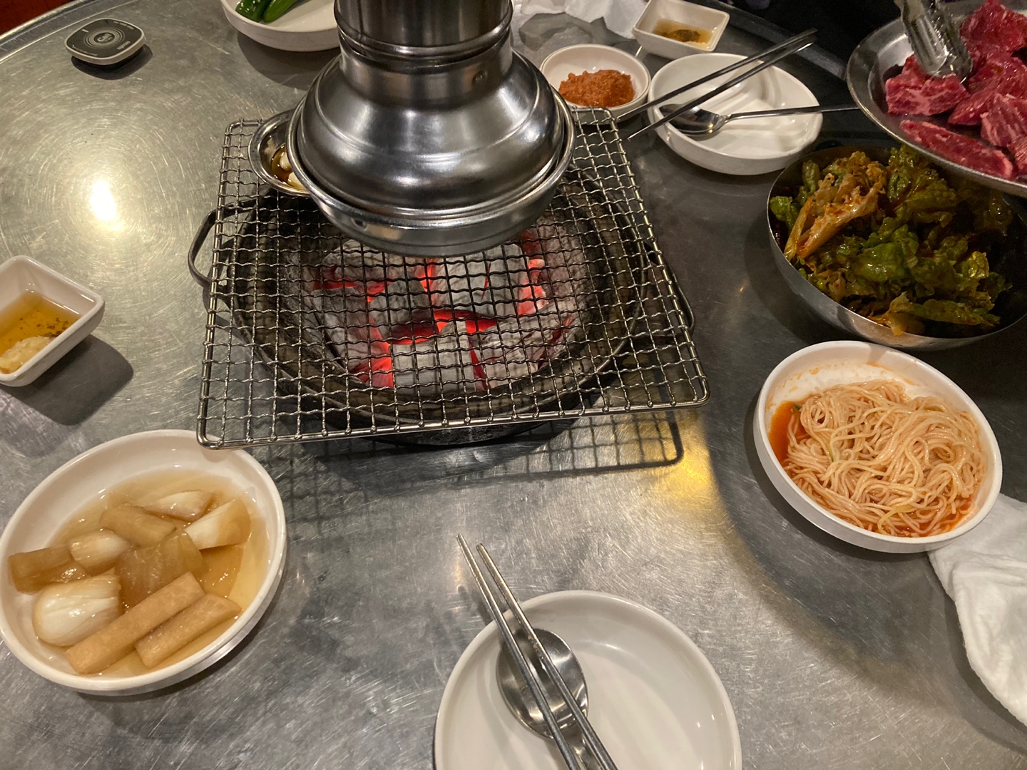 (오빠가 고기를 잘 굽기도 하고)