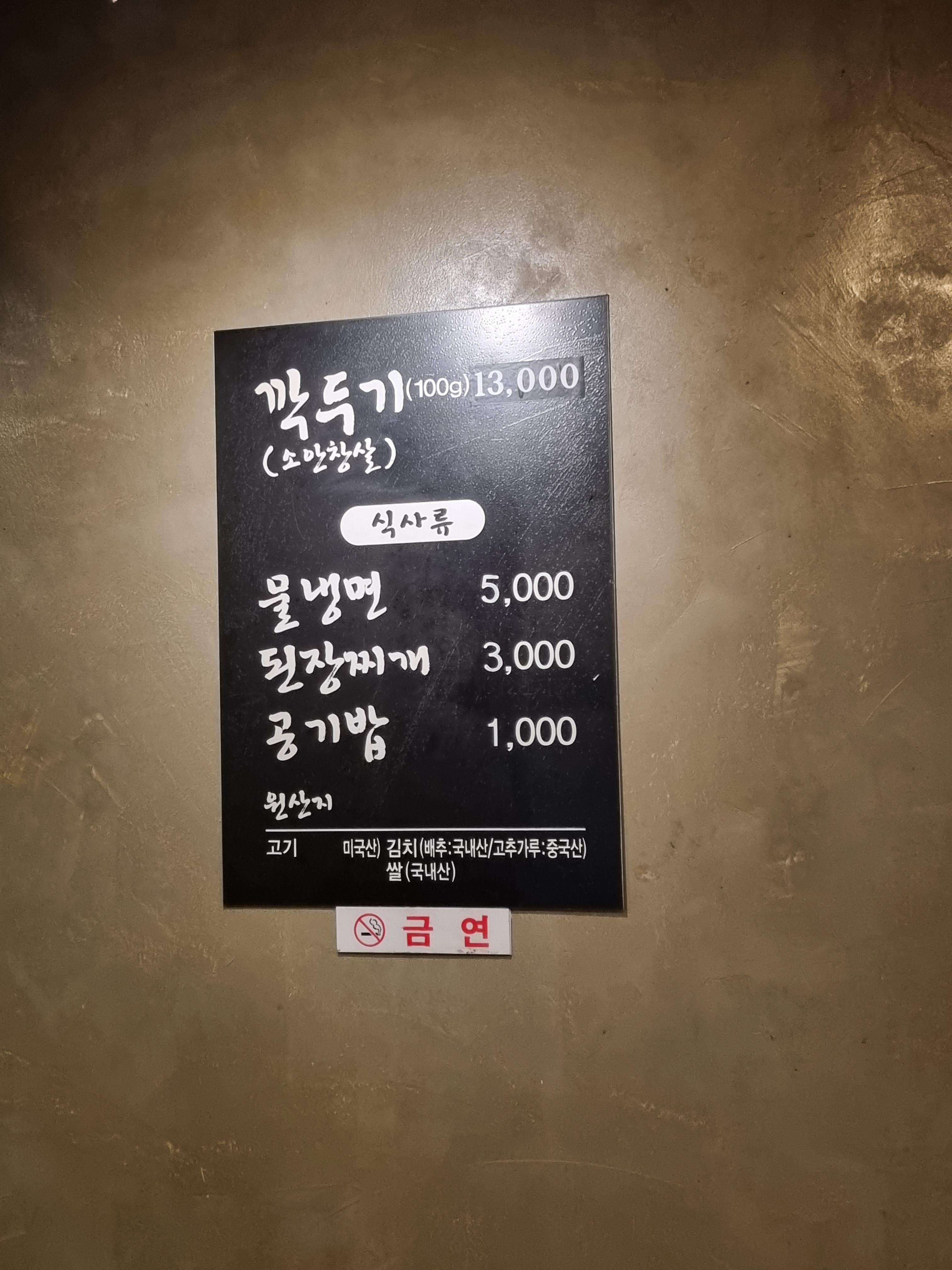 간판인데 깍두기(안창살) 단일 메뉴이다.