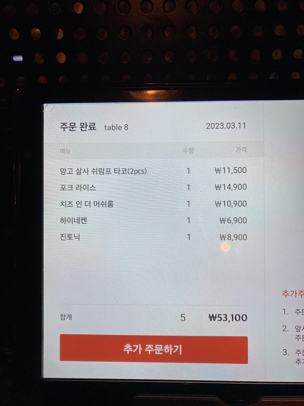 테이블 위에 있는 태블릿으로 메뉴를 시키는 식이다.