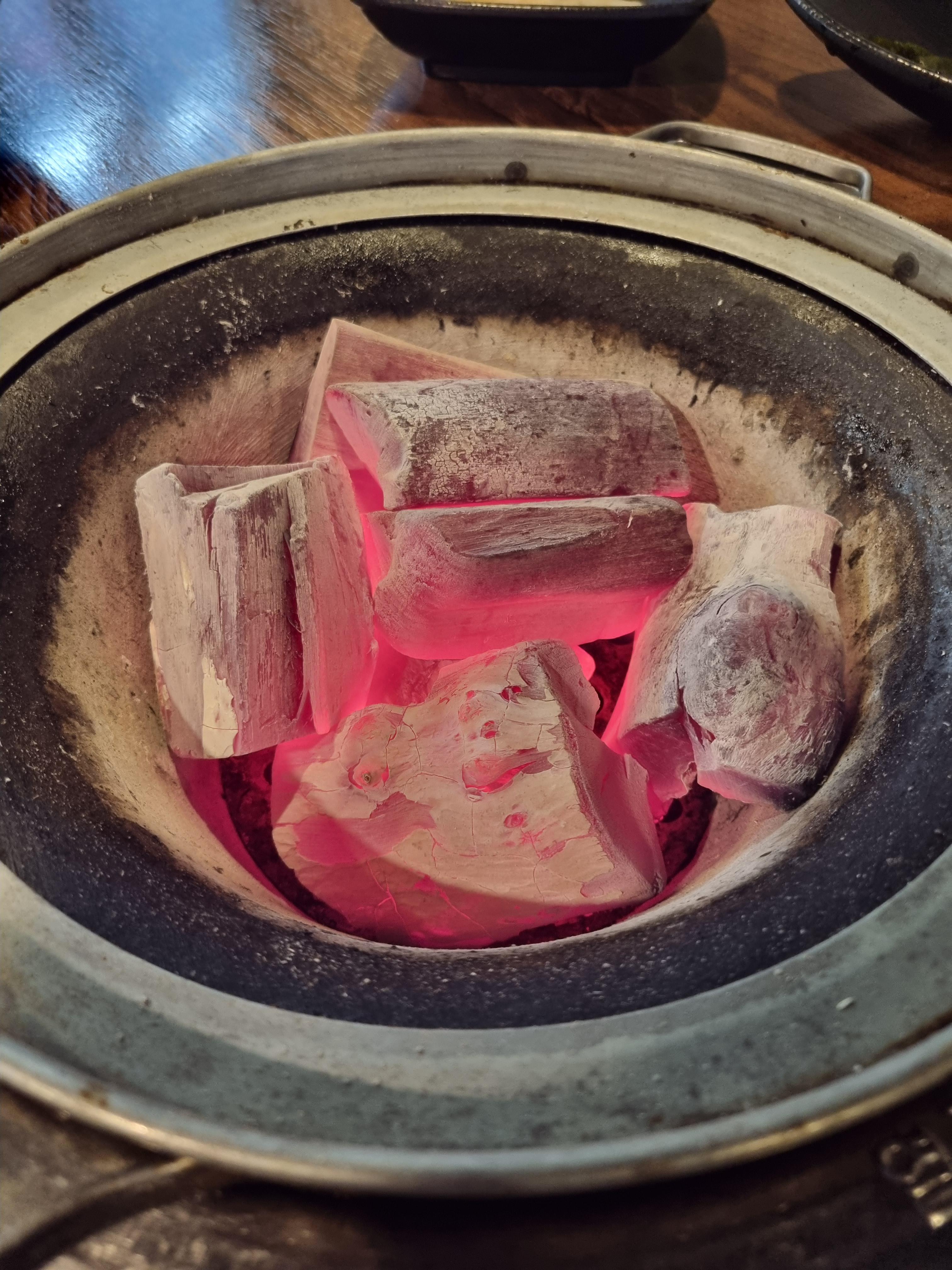 남자 사장님께서 숯을 가져다 주셨다.