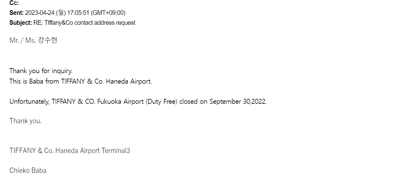 급히 메일을 넣어서 반지를 예약할 수 있었다.