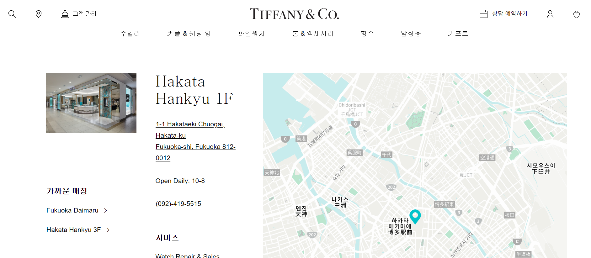 후쿠오카 한큐백화점에 있는 티파니 매장에