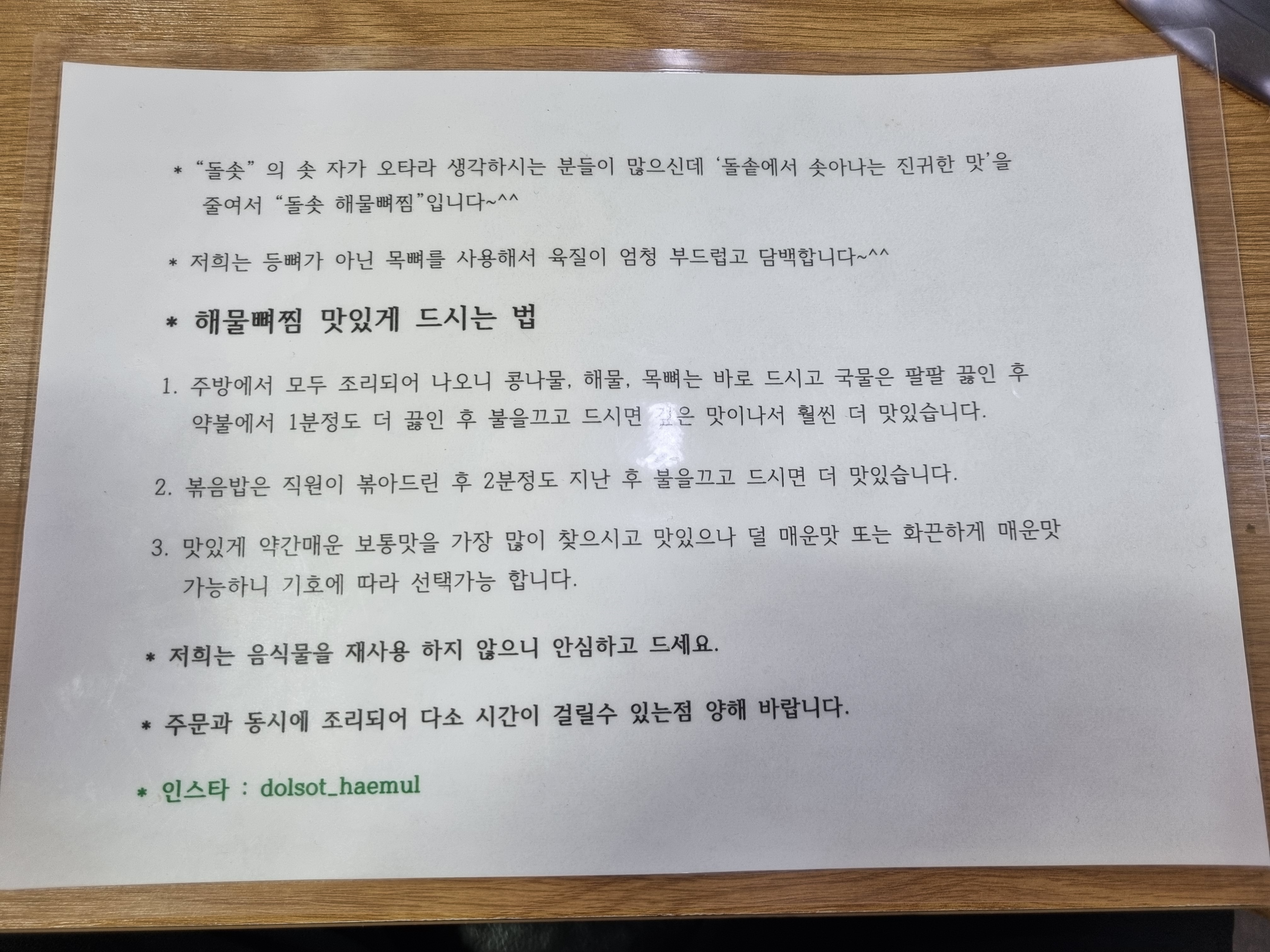 "돌솟에서 솟아나는 진귀한 맛"이라는